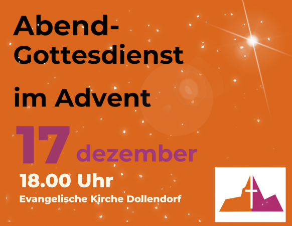 Am Sonntag, den 3. Advent feiern wir um 18 Uhr einen Gottesdienst, in dem das gemeinsame Singen und Beten und zur Ruhe kommen im Vordergrund stehen.
