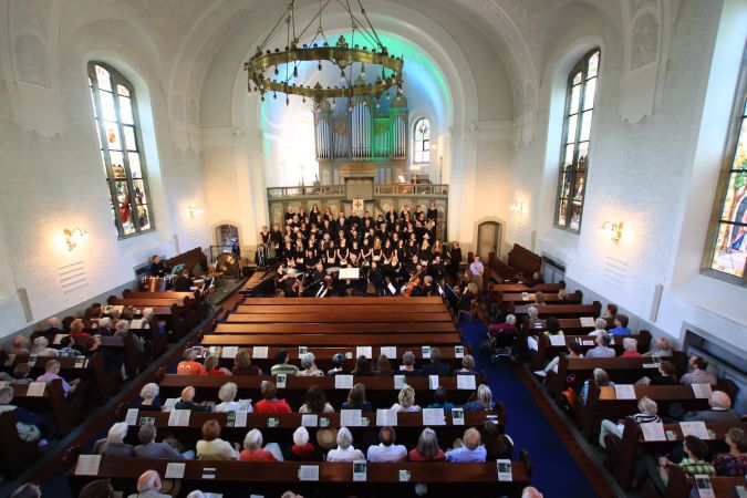 Das Werk des Oberhausener Komponisten war sehr abwechslungsreich zusammengestellt, in dem jede der beteiligten Gruppen auch einzeln glänzen konnte. Klangvoll wurde die Große Kirche erfüllt, wenn auch die Gemeinde mit voller Stimme mitsingen konnte: „Wie soll ich dich empfangen“, „Seht, die gute Zeit ist nah“ und „Tochter Zion“.