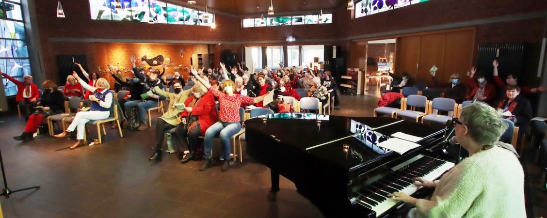 Wer auch eine Rolle innehatte beim WGT-Gottesdienst im Dollendorfer Gemeindezentrum war die bekannte WGT-Musikerin Bea Nyga. Es war ein Erlebnis, mit ihr im Rahmen eines vorgeschalteten Workshops die WGT-Lieder einzustudieren. Auch während des eigentlichen Gottesdienstes bekamen manche Musikstücke viele neue Facetten. Im Anschluss an den Gottesdienst wurde vor dem Gemeindezentrum zu Tee & Scoones eingeladen – eine schöne Gelegenheit zum Austausch.