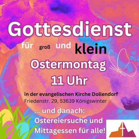 Ostermontag feiern wir Familiengottesdienst - um 11 Uhr in Dollendorf.