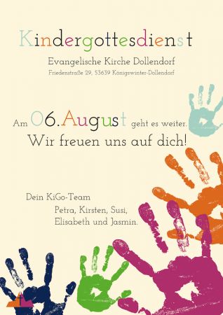Es ist wieder soweit - nach der Sommerpause startet am 6. August wieder neben dem Hauptgottesdienst in Dollendorf der Kindergottesdienst um 11.00 Uhr