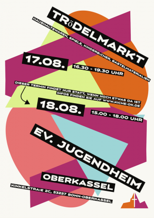 Wir haben Gemeinderäume, zwei Küchen und einen Kindergarten aufgelöst. Jetzt gilt es, Bastelmaterial, Kinderbücher und Spielzeug sowie Haushaltswaren in neue Hände zu übergeben. Dafür gibt es einen Second-Hand-Basar am Donnerstag 17.08. und Freitag 18.08. im evangelischen Jugendheim in Oberkassel. Zuerst sind Kitas eingeladen. Die Öffnungszeiten für alle Menschen sind: