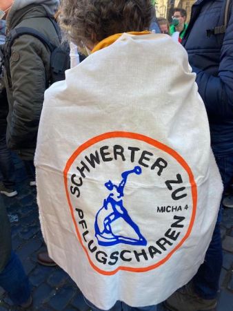 Am letzten Sonntag vor der Passionszeit stand die Predigt von Pfarrerin Quaas unter den erschütternden Ereignissen in der Ukraine. Sie erinnerte daran, dass seit 1959 vor dem UNO-Gebäude in New York eine riesige Skulptur steht: „Schwerter zu Pflugscharen“. Die Sowjetunion hat damals diese Skulptur den Vereinten Nationen geschenkt – als Zeichen der Bereitschaft zur friedlichen Koexistenz mit dem sogenannten „Klassenfeind“. Ein Bild dieser Skulptur, auf Stoff gedruckt, weil dieser Druck nicht genehmigungspflichtig war, wurde in den frühen 80er Jahren zum Zeichen der Friedensbewegung in der DDR.