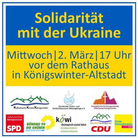 Am Aschermittwoch findet um 17.00 Uhr vor dem Rathaus in der Königswinterer Altstadt eine Demonstration für den Frieden statt. Diese Kundgebung ist überparteilich und überkonfessionell.