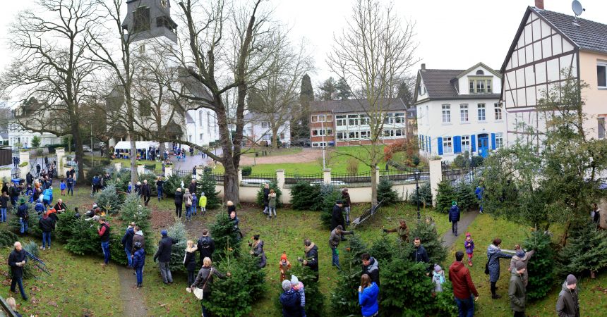 Nach dem Gottesdienst am 3. Advent, den 15. Dezember, gibt es wieder Weihnachtsbäume rund um die Große Evangelische Kirche Oberkassel.