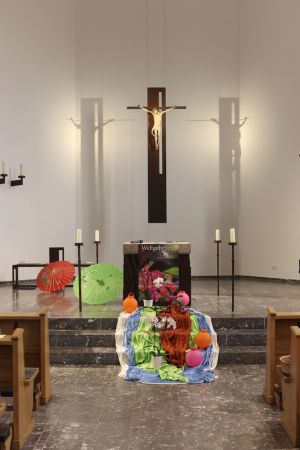 Farbenprächtig, asiatisch und bis in die Musik hinein ökumenisch, so haben wir am ersten Freitag im März den Weltgebetstag in der katholischen Kirche St. Laurentius in Oberdollendorf gefeiert: Ein herzlicher Dank dabei an den Familienchor LaReMi unter der „einmaligen“ Leitung von Stefanie Ingenhaag, Kantorin der evangelischen Kirchengemeinde Oberkassel-Königswinter - auch hier gab es gelebte Ökumene, genauso wie beim Vorbereitungsteam und bei den vielen bunten Decken.