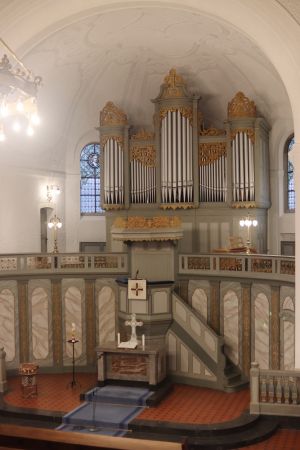 Ein Glücksfall für die Gemeinde und den Denkmalschutz ist die Tatsache, dass ca. 60 Prozent des historischen Pfeifenmaterials noch in der Peter-Orgel vorhanden waren. Diese wurden im Zuge der Restaurierung zurück in die Walcker-Orgel gebaut, die restlichen Pfeifen rekonstruiert. Viele andere Teile der alten Orgel waren noch vorhanden, beispielsweise die Blasebälge und Windladen. Der Spieltisch war leider nicht mehr da. Dieser sowie weitere fehlende Teile wurden ersetzt. Die Peter-Orgel auf der hinteren Empore wurde im Frühjahr 2022 abgebaut. Dadurch fällt mehr Licht durch das große, bisher verdeckte Fenster in den Kirchraum – eine schöne Veränderung für die Kirche. Wie der freigewordene Platz auf der hinteren Empore zukünftig genutzt werden soll, ist noch nicht entschieden.