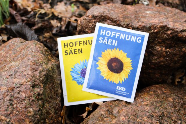 „Nur die Samen“ - an diese Antwort des Engels musste ich denken, als ich von der Aktion #hoffnungsäen gehört habe. Die Evangelische Kirche in Deutschland (EKD) lädt dazu ein, gelbe Sonnenblumen und blaue Kornblumen zu sähen. Gelb und blau, die Farben der ukrainischen Flagge. Gelbe Sonnenblumen und blaue Kornblumen, die wir im Frühling sähen auf Hoffnung hin. Auf die Hoffnung hin, dass, wenn sie im Sommer blühen, Frieden und Freiheit für die Ukraine möglich sind.