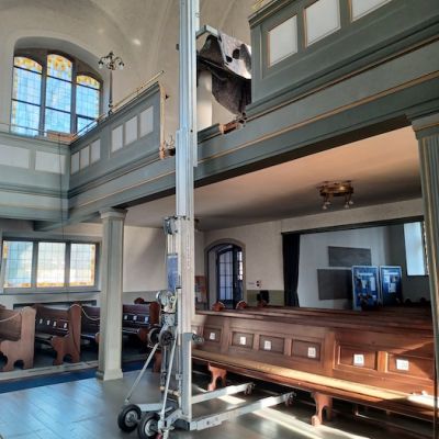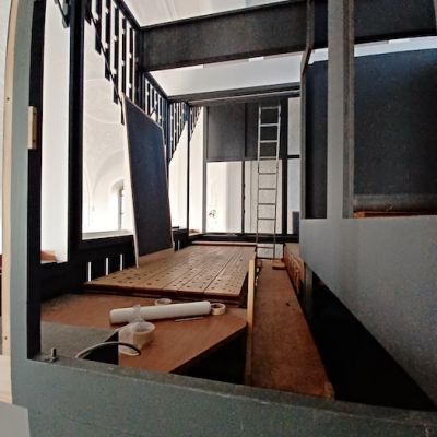 Vom 7. bis 14. März 2022 haben Mitarbeiter der Firma Ladach aus Wuppertal die Peter-Orgel in der Großen Kirche in Oberkassel abgebaut. Zum Abbau gehörte neben dem großen Gehäuse die kleine Chororgel in der Brüstung der Empore sowie der Spieltisch an der Seite. Nach vielen Tagen Arbeit ist so Stück für Stück die Peter-Orgel aus der Großen Kirche verschwunden und das bisher verdeckte Fenster auf der hinteren Empore zum Vorschein gekommen. Ein paar Bilder in der Galerie dokumentieren das Geschehen.