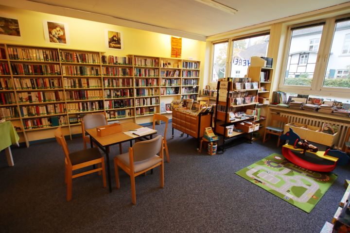 Die evangelische öffentliche Bücherei in Oberkassel ist für alle da – egal welchen Alters, welcher Konfession oder Staatsangehörigkeit. Mit einem breitgefächerten Angebot von 8.000 Medien haben wir für jeden Geschmack etwas zu bieten. Auf 64 qm erwarten Sie Kinder- und Jugendbücher, Spiele, Romane, Lyrik, Krimis, eine Auswahl an Zeitschriften, Sachbücher, Ratgeber, CDs und DVDs; überwiegend neueren Datums, aber auch einige Klassiker. Bei uns können Sie nach Herzenslust stöbern oder sich von uns beraten lassen, während der Nachwuchs sich mit unseren Spielzeugkisten oder an den Bilderbuchtrögen vergnügt. Zweimal im Jahr veranstalten wir einen großen Bücherflohmarkt, dessen Erlös mithilft, unseren Bestand gleichbleibend aktuell und attraktiv zu erhalten. Bei unseren Neuanschaffungen berücksichtigen wir (im Rahmen unserer Möglichkeiten) gerne Ihre Wünsche.