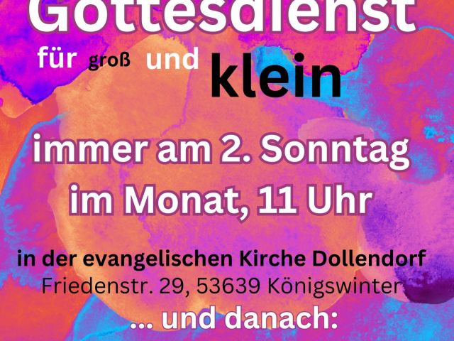 An jedem zweiten Sonntag im Monat feiern wir um 11:00 Uhr in Dollendorf unsere Gottesdienste für groß und KLEIN. In diesen Gottesdiensten sind Kinder…