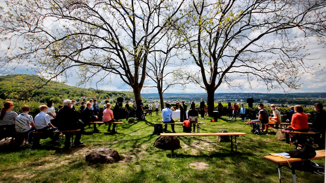Am Donnerstag 26.5.2022 ist Christi Himmelfahrt. Wir feiern Familiengottesdienst auf der Hülle. Zum ersten Mal nach zwei Jahren treffen wir uns wieder direkt auf der Aussichtsplattform über den Weinbergen in Oberdollendorf. Wir singen, beten und genießen die Weite des Himmels. Mitgestaltet wird der Gottesdienst vom Bläserkreis. Seien auch Sie dabei gerne mit Kindern, Nachbarn, Freunden und feiern Sie mit. Nach dem Gottesdienst gibt es eine kleine Stärkung und danach einen schönen Heimweg durch den Wald oder die Weinberge.