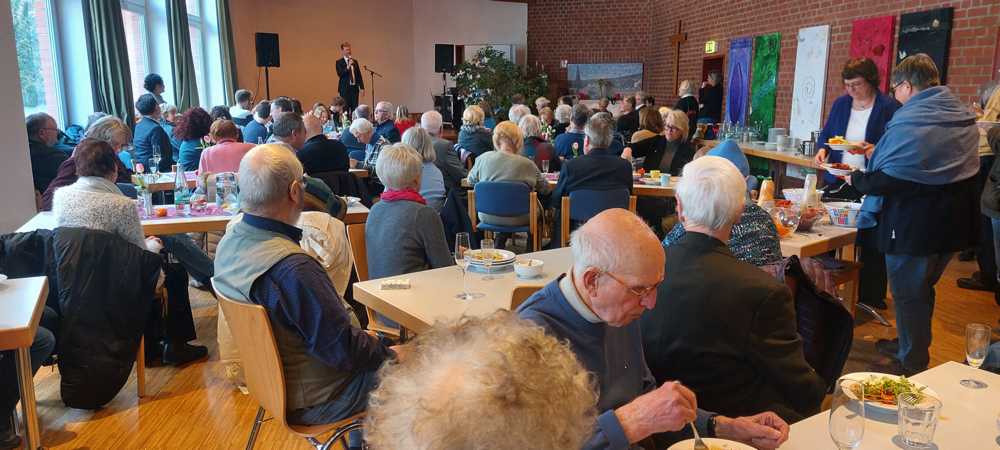 Im Anschluss an den Gottesdienst gab es ein mehrgängiges Gemeinde-Essen, es gab Grußworte von neuen Kollegen, vom Beueler Bürgermeister und einer Vertreterin des CJD. Und es gab viel Gelegenheit, sich ein wenig kennenzulernen.
