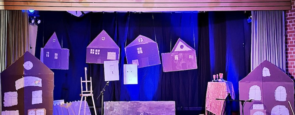 Die Kulissen und Requisiten haben die Kinder auf dem Probenwochenende zusammen mit Susanne Kress gebastelt.