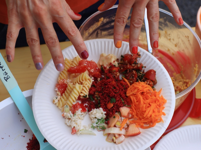 Überall waren sie zu finden: bei der Deko, den Servietten, dem Kuchen, den Salaten und bei einigen Getränken. Man konnte sich in den Farben schminken, verkleiden und fotografieren lassen. Oder man ließ sich die Fingernägel entsprechend lackieren oder ein Tattoo mit dem neuen Gemeinde-Logo verpassen.