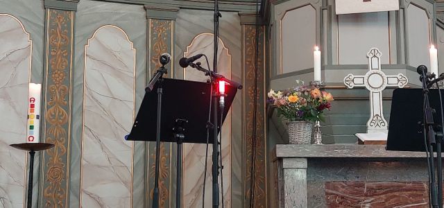 Ein Rundfunk-Gottesdienst hat einen recht langen Vorlauf, mehrere Monate. Es ist ja auch etwas Besonderes, damit die über 400.000 Hörer des Deutschlandfunks ein gutes, interessantes und vielfältiges Klangerlebnis haben. Am Vortag bauten die DLF-Tech…