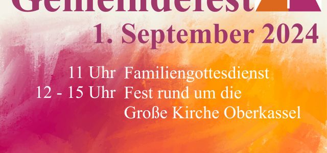Wie immer kurz nach den Sommerferien, am 1. September, feiern wir Gemeindefest. In diesem Jahr feiern wir in Oberkassel rund um die Große Kirche.