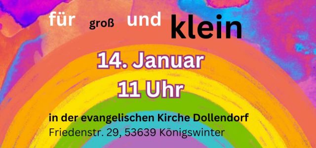 Am nächsten Sonntag den 14. Januar 2024 feiern wir wieder einen Familiengottesdienst um 11 Uhr in der Evangelischen Kirche Dollendorf unter der Leitung von Pfarrerin Carina Pietscher. Groß und Klein sind herzlich eingeladen, auch zu dem gemeinsamen…
