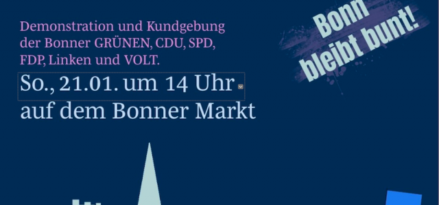 Als Evangelische Kirchengemeinde Oberkassel-Königswinter rufen wir auf zur Teilnahme an der Kundgebung „Gegen Rassismus, für Demokratie“ am 21. Januar in Bonn um 14.00 Uhr auf dem Bonner Markt. Im Aufruf, den die Parteien der Bonner Grünen, CDU, SPD…