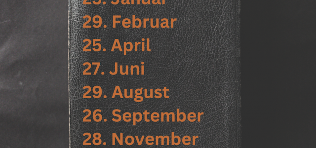 Hier sind die neuen Termine für das Jahr 2024 der Bibel-Lesegruppe. Das Treffen ist einmal im Monat donnerstags um 20 Uhr im evangelischen Gemeindezentrum Dollendorf.