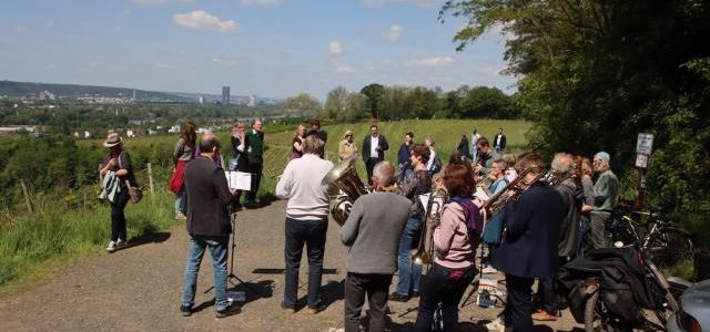 Bei sonnigem Frühlingswetter erklommen viele am Himmelfahrtstag den Weinberg, manche sicherlich auch angelockt durch die Bläserklänge, die bis ins Tal zu hören waren. Man konnte an den unterschiedlichen Stationen Halt machen, Psalmen schreiben, mi…