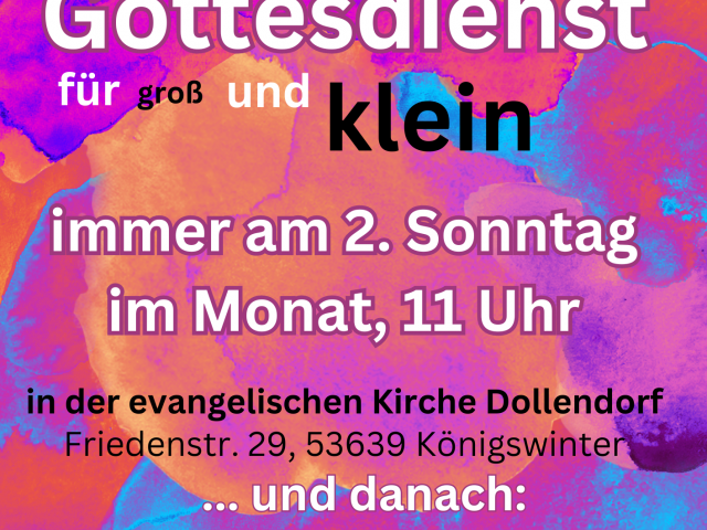 An jedem zweiten Sonntag im Monat feiern wir um 11:00 Uhr in Dollendorf unsere Gottesdienste für groß und KLEIN. In diesen Gottesdiensten sind Kinder…